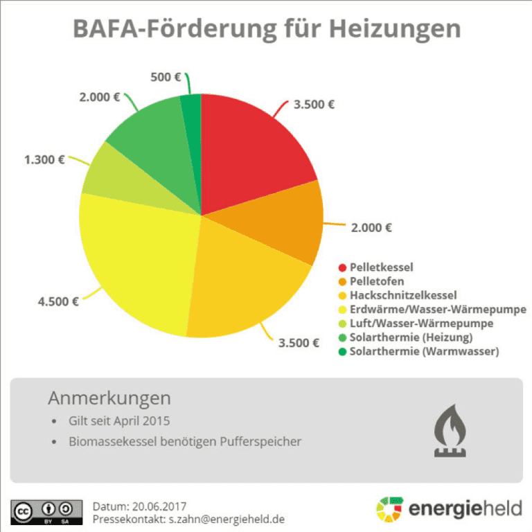 Die BAFA fördert dagegen den Umstieg auf energieeffiziente Heizungsanlagen auf Basis erneuerbarer Energien. Für eine Öl-Solarkombination erhalten Sie aus dem Anreizprogramm bis zu 2.000 Euro. Zu den geförderten Ökoheizungen gehören: