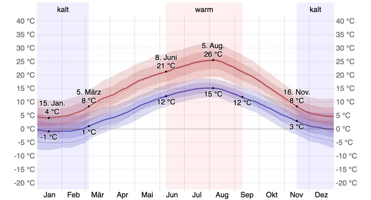 Mit Blick auf die Klimakurve kann festgestellt werden, dass in Heilbronn die Heizungen im Zeitraum von Anfang Oktober bis Mitte März am häufigsten benötigt werden. Ab wann Sie die Heizung am besten einschalten sollten, können Sie hier nachlesen.