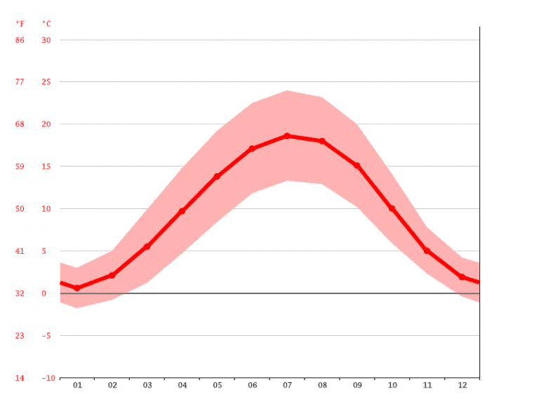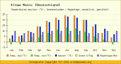 Wir empfehlen Ihnen dringend, dass Sie sich vor dem Kauf einer Heizungsanlage einen Überblick über die Verhältnisse des Klimas in Mainz verschaffen. Eine grobe Übersicht zeigt die folgende Abbildung.